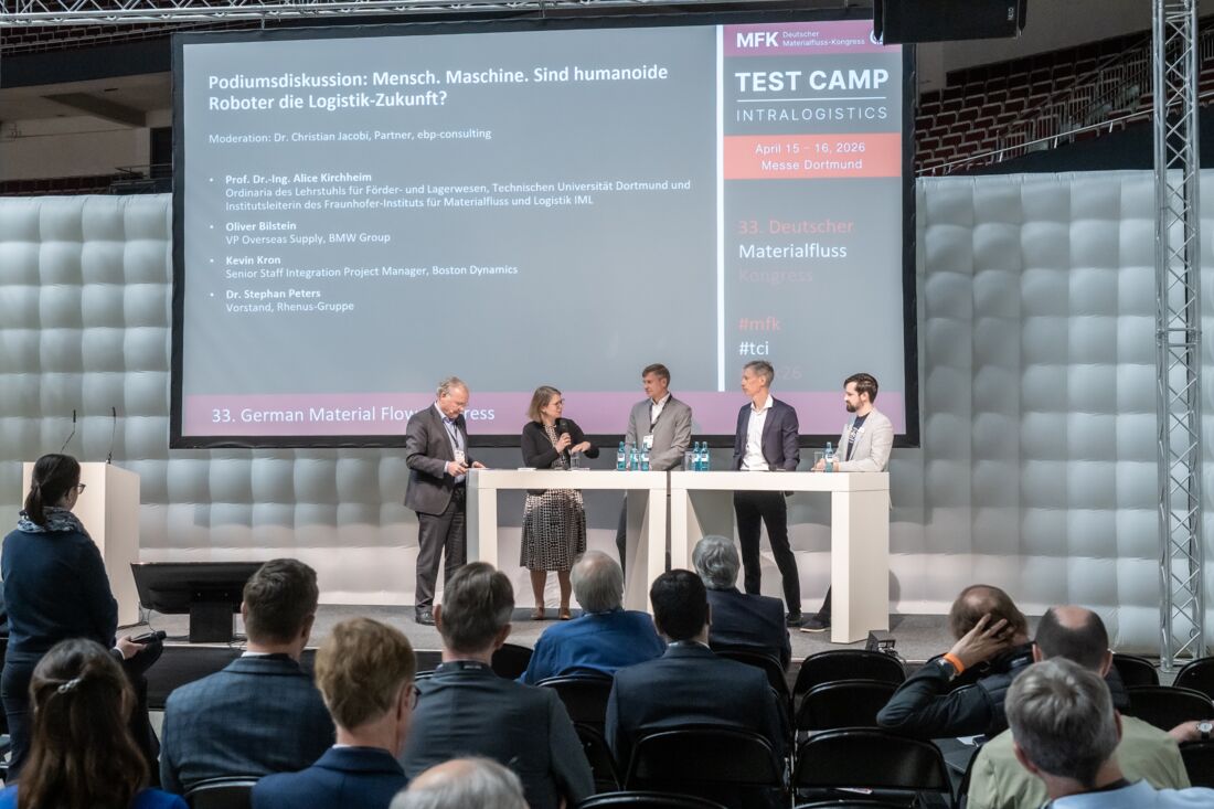 Ein echter Publikumsmagnet des TEST CAMP INTRALOGISTICS 2026 war der Deutsche Materialfluss-Kongress (MFK), der über drei Jahrzehnte im Großraum München beheimatet war und in diesem Jahr erstmals im Rahmen des Dortmunder Testevents stattfand. Unter dem Motto „Next Stop: Beyond Automation“ bot der Kongress mit mehr als 40 Speakern ein breites Spektrum an praxisnahen Einblicken, Impulsen und Diskussionen zu aktuellen Entwicklungen in der Intralogistik. Fachlicher Träger ist die VDI-Gesellschaft Produktion und Logistik.